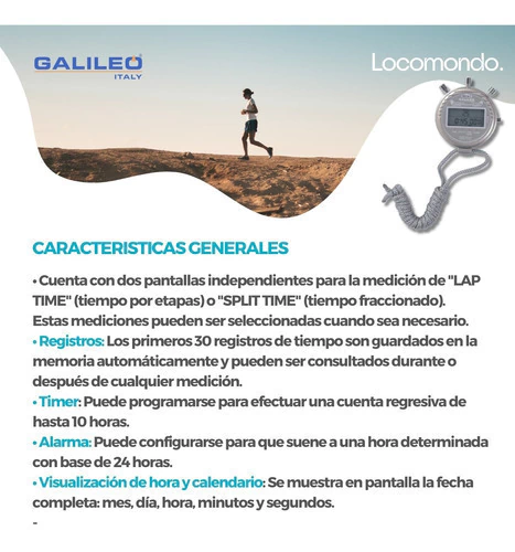- Cuenta con dos pantallas independientes para la medición de "LAP TIME" (tiempo por etapas) o "SPLIT TIME" (tiempo fraccionado). Estas mediciones pueden ser seleccionadas cuando sea necesario.