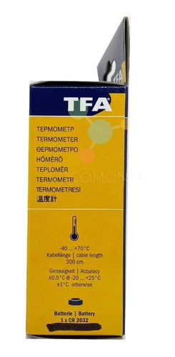 • Medición de la temperatura con cable fino de 3 metros con sensor a prueba de agua.